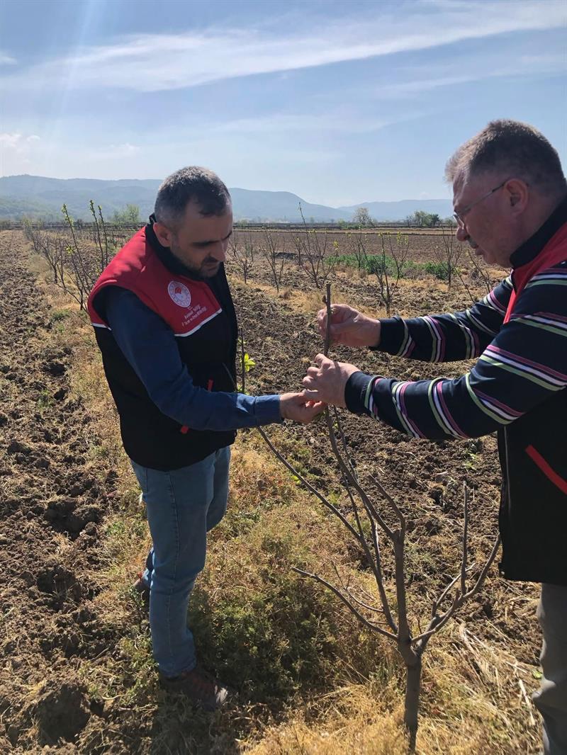 Bahçelerin hastalık yönünden genel kontrolleride yapılarak üreticilerimizle işbirliği halinde üretime katkı sağlamak adına çalışmalarımız devam etmektedir.