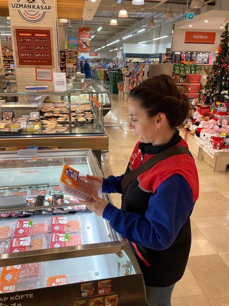 Yoğunluğun çok yaşandığı marketler, kasaplar, pastaneler ve toplu tüketim yerlerinde gerçekleştirilen kontrollerde hijyen koşulları, ürünlerin son kullanma tarihleri ve muhafaza şartları inceleniyor.