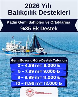 🙋♀️ Kadın Balıkçılara %35 İlave Destek! (Örn: 0-4,9 m için toplam 8.100 TL)