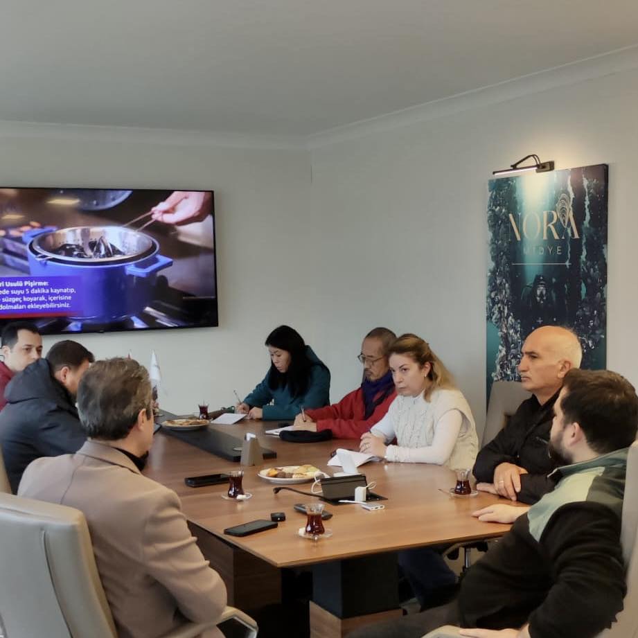 Eğitim ve ziyaret kapsamında üretim çiftlikleri ve Balıkesir'in su ürünlerindeki genel durumu hakkında teknik personellerimiz ve heyet bilgi alışverişinde bulunarak, bölgede faaliyet gösteren midye işleme tesislerini ve sahada üretimin her anını aşama aşama, inceledi.