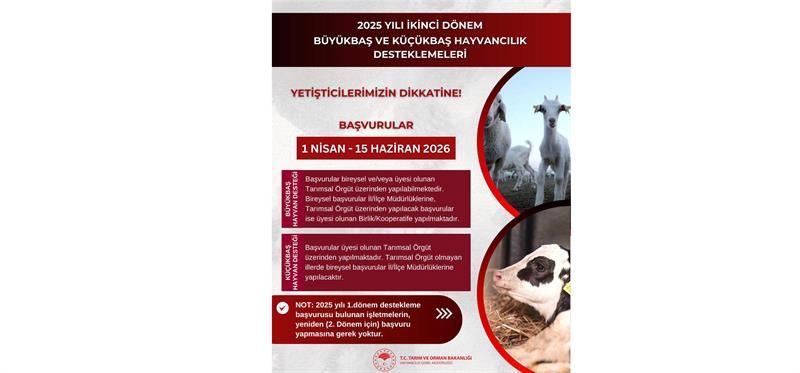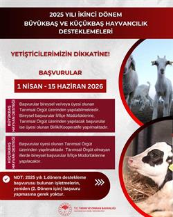 2025 YILI 2.DÖNEM BÜYÜKBAŞ VE KÜÇÜKBAŞ HAYVANCILIK DESTEKLEMELERİ