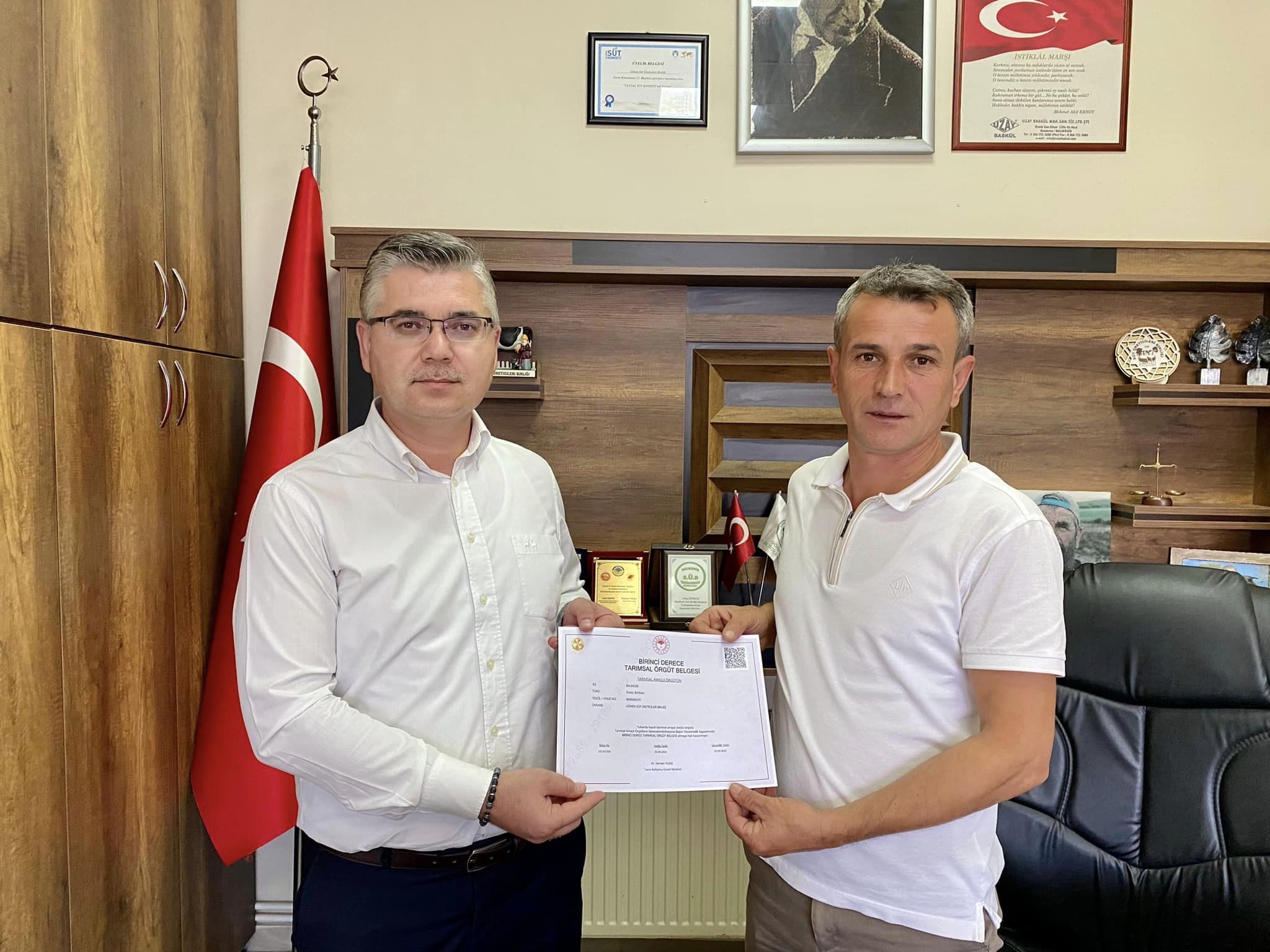 Gönen Manyas Süt Üreticileri Birliği Birinci Derece Tarımsal Örgüt Belgesi Almaya Hak Kazanan Birliklerimize Sertifikaları verildi 10.10.2024
