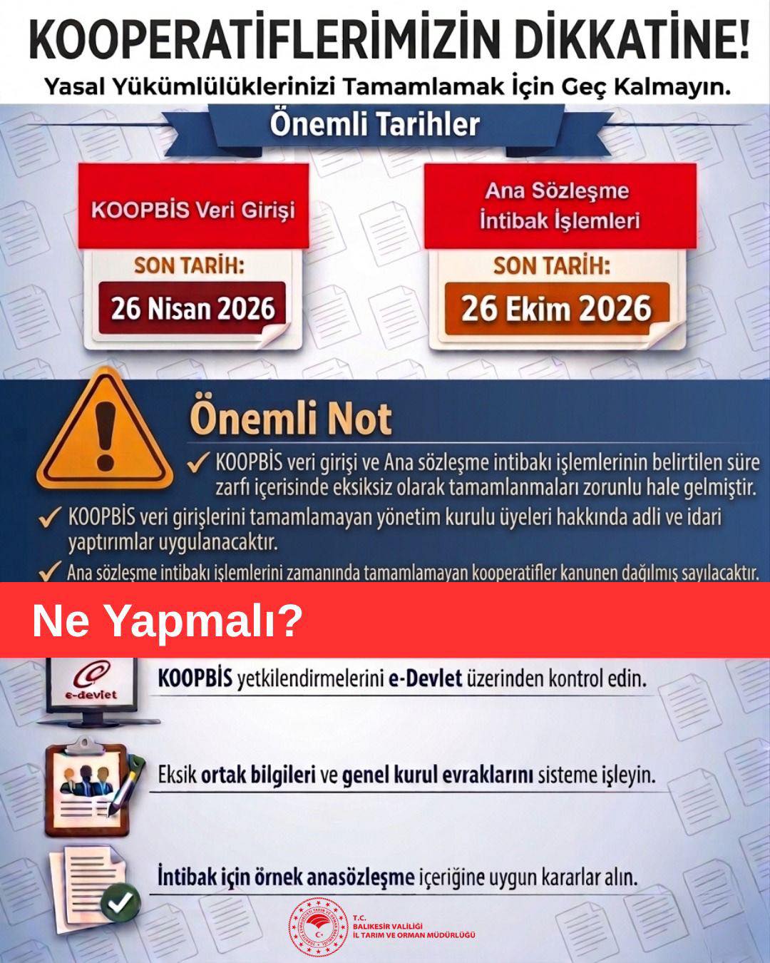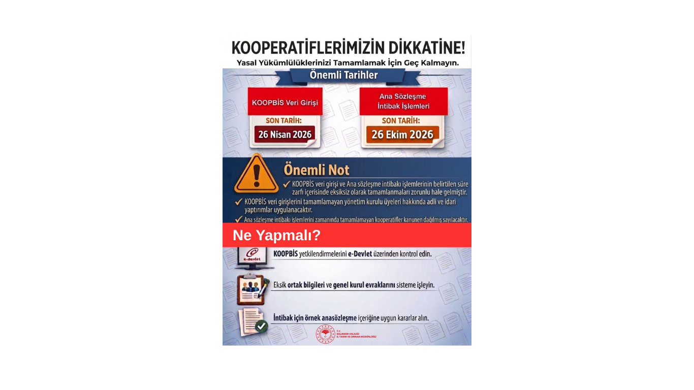 KOOPERATİFLERİMİZİN DİKKATİNE 30032026